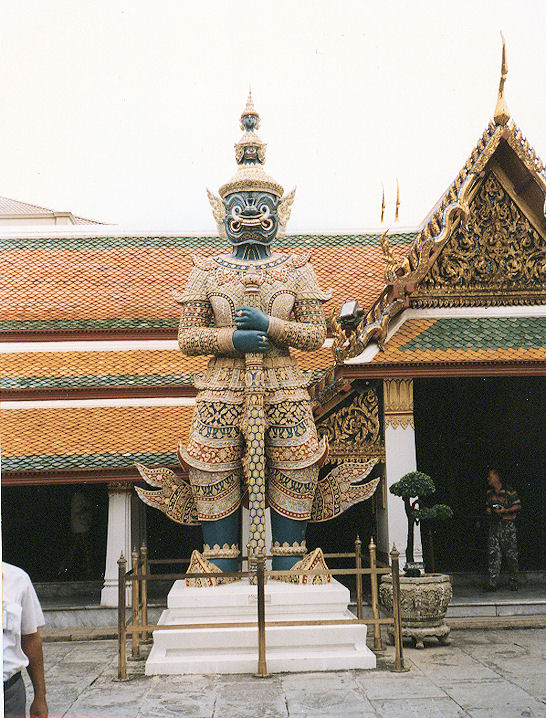 Tempelwächter in der "Tempelstadt" in Bangkok. Der furchterregende