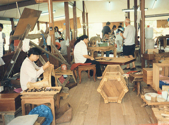 besuchten eine Holzschnitzerei in Chiang Mai