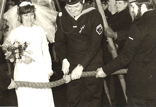 Ich stehe in der obersten Reihe, 3. von links. 1970 habe ich in Brake eine "zünftige" Marinehochzeit gefeiert.